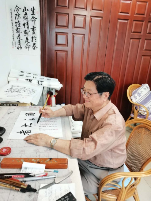 截止到目前,李邦君教授的“抗疫战书”已达126幅,他以“每日一书”的行动,记录抗疫进程,讴歌抗疫英雄,弘扬抗疫精神,抒发抗疫情怀。书法寥寥数字,但笔锋所至,既反映他深厚的书法功底,也表现他的爱国情怀,彰显了一位老共产党员的永恒初心。