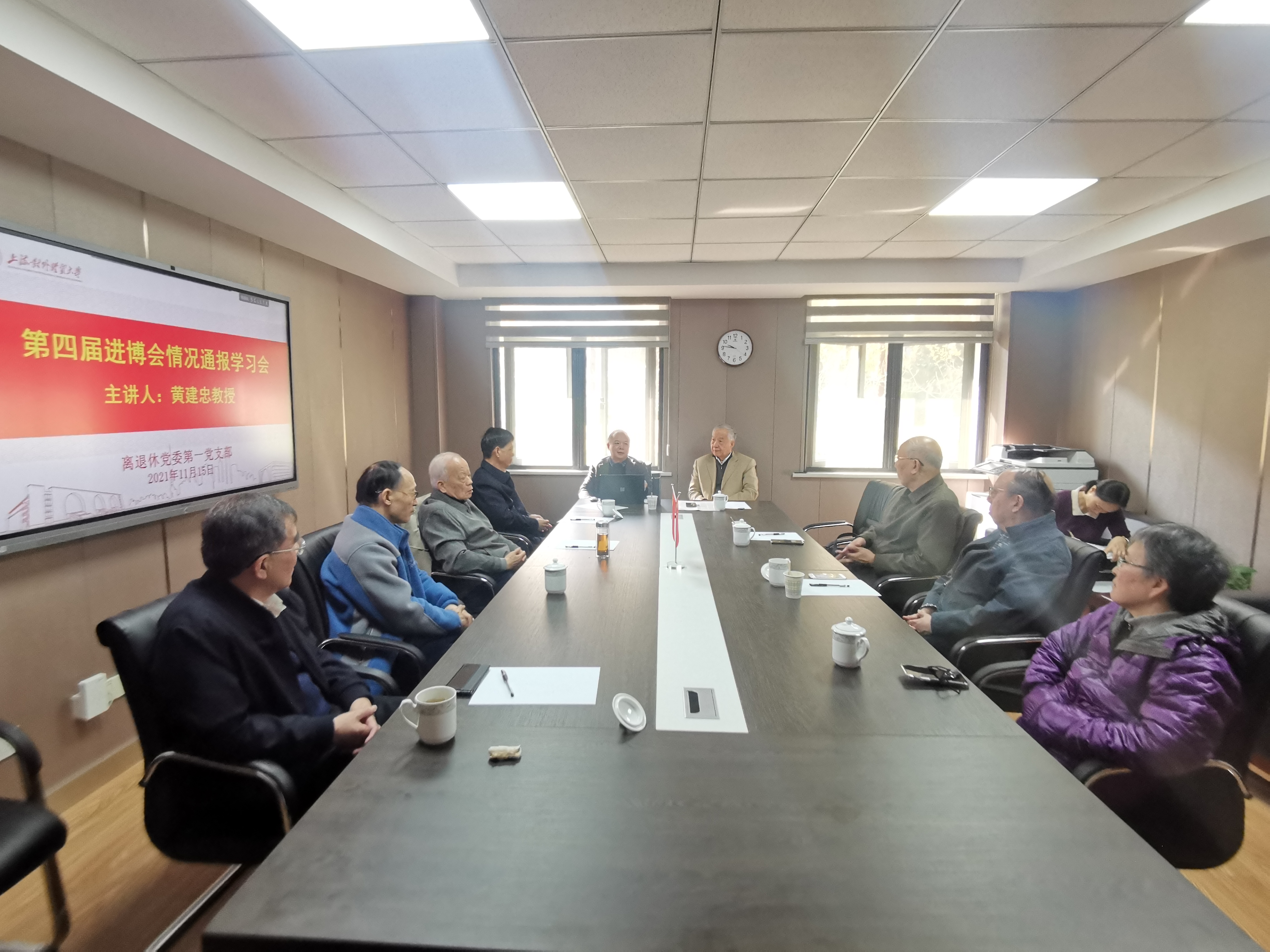 11月15日上午,应校离退休党委、老干部办公室邀请,国际经贸学院院长兼研究生院院长黄建忠教授来到古北校区老干部会议室,围绕其自身参与第四次进博会活动以及进博会立法工作,专程为退休老领导作了1个小时的情况通报,通报会由原校党委书记、退休一支部书记皮耐安主持会议,封福海、武克敏等八位老领导参加会议。