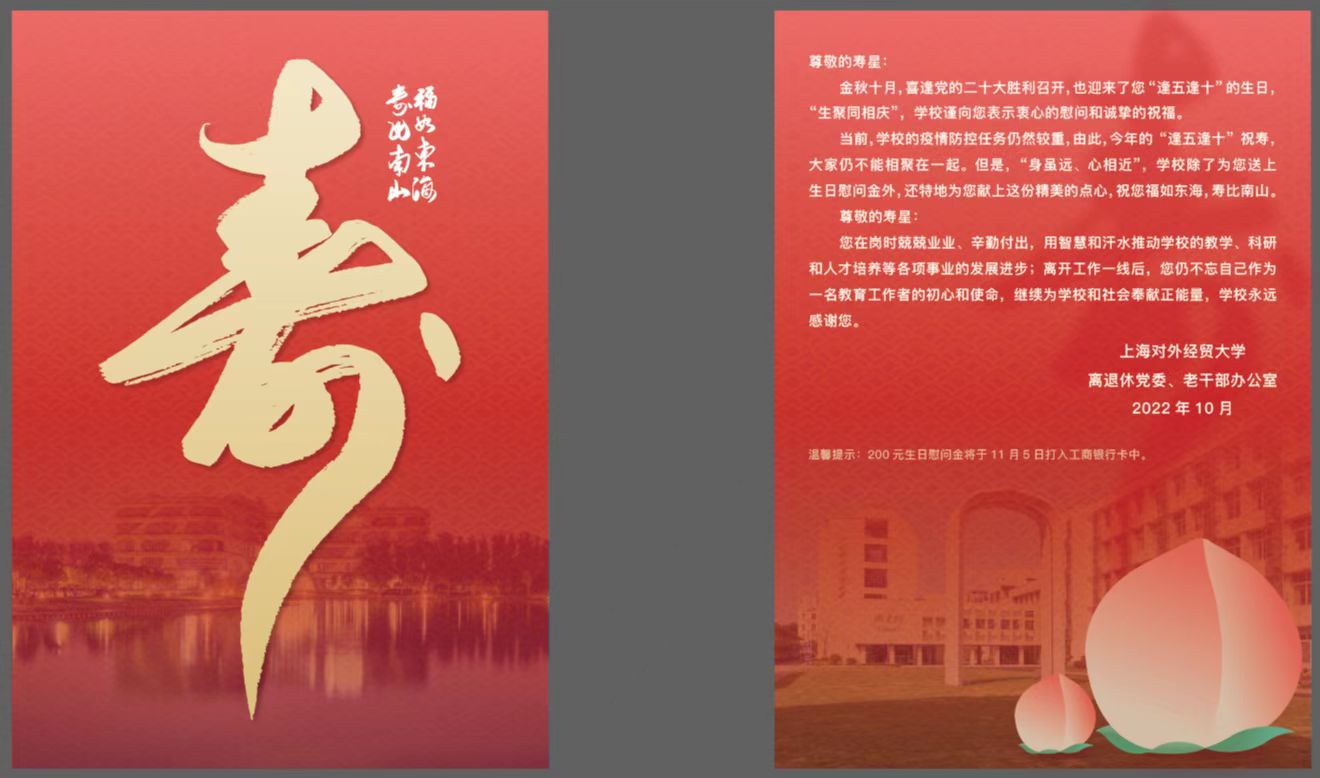 学校各单位和部门也积极行动起来,开展了系列敬老活动。除了由单位和部门领导亲自带队上门走访外,各单位、各部门还结合疫情防控要求,或有的放矢组织退休教职工代表“回娘家”;或另辟蹊径开展内容丰富的茶话座谈会;或精挑细选为老同志送上温馨祝福。