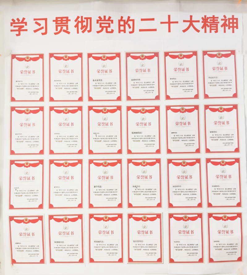 近日,上海对外经贸大学离退休党委组织党员们参加了“学习二十大 红心跟党走”上海市离退休干部网上知识答题活动,党员们拿到一张张学习证书,脸上露出开心的笑容。