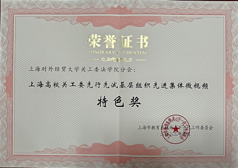 在表彰会上获悉,我校关工委马克思主义学院分会获得上海市教育系统基层“五好关工委组织”称号,我校关工委法学院分会获得上海市教育系统关工委先行先试基层组织先进集体称号,我校关工委法学院分会获得上海高校关工委先行先试基层组织先进集体微视频特色奖,我校关工委副秘书长莫怡获得2021-2022年度上海市高校优秀特邀党建组织员称号,我校关工委工商管理学院分会获批上海市教育系统关工委第三批先行先试基层组织。