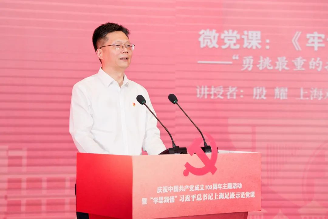 本次示范党课是在迎来中国共产党成立102周年之际,在深入开展学习贯彻习近平新时代中国特色社会主义思想主题教育期间,上海对外经贸大学党委和松江区广富林街道党工委切实落实主题教育“四联”机制的具体实践,是主题教育第一批开展单位辐射带动第二批单位的创新尝试,是党建赋能地校高质量发展、高校赋能基层治理的生动实践。