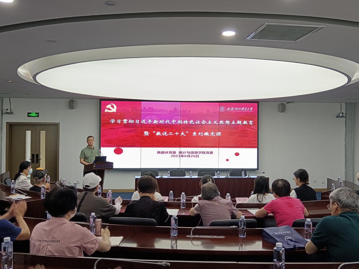 为全面学习贯彻党的二十大精神,着力推进学习贯彻习近平新时代中国特色社会主义思想主题教育走深走实,6月26日下午,离退休党委和统计与信息学院党委联合举办“数说二十大”系列微党课,为退休老党员开展了一场别开生面,令人耳目一新的专场学习会,特别是系列微党课通过大量的数据、图表和对比分析的方式,生动直观、清晰明了,受到了与会老同志的好评。微党课由离退休党委书记董伊金主持,来自统计与信息学院的杨小帆老师、学生党员封冰悦、栗亚茹、徐子炎分专题为老同志们做了讲述。