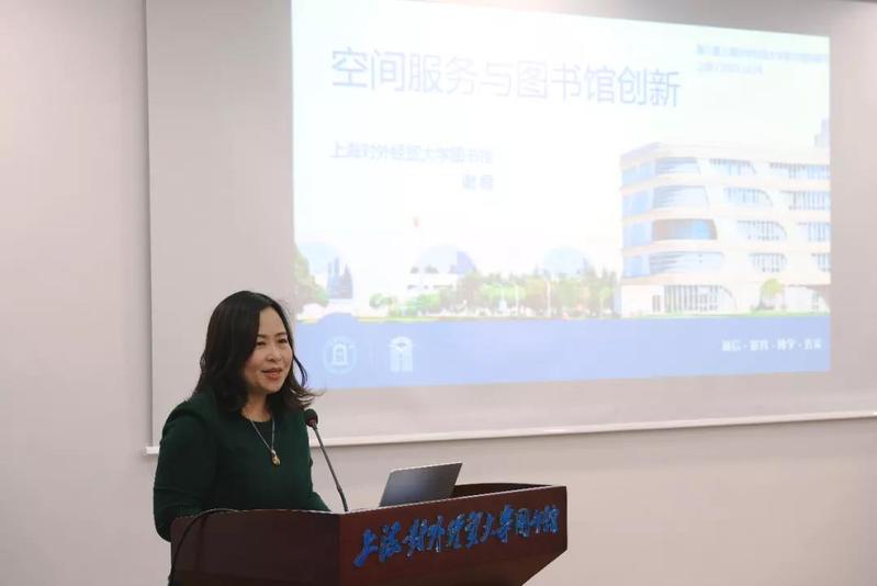 学术报告交流环节正式开始,上半场包括两场报告。首先,谢蓉副馆长做了题为《空间建设与图书馆创新》的报告。报告从国内外对图书馆空间服务理论研究入手,分别总结了第一代图书馆、第二代图书馆及第三代图书馆中典型的空间特征,并以美国西雅图图书馆、芬兰颂歌图书馆及国内的苏州第二图书馆为生动案例,提出建设以人为本、开放性、藏用分离、打造各类主题馆及智慧化的空间建设是现代图书馆的需求。在报告后半段,她展示了丰富的图片和视频,结合智慧型图书馆的空间建设着重介绍了上海对外经贸大学新馆和古北馆的空间建设。