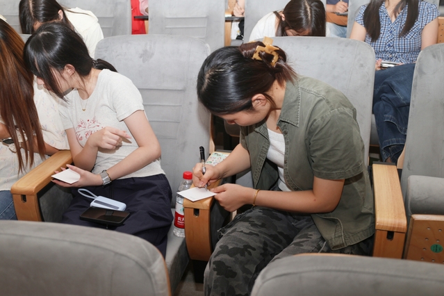 课程尾声,张杰通过视频寄语嘱托青年学子:“热爱祖国、热爱人民,将人生融入祖国和人民的需要中。”课后,同学们纷纷在卡片上写下上课心得,表达了“请前辈放心,强国有我,复兴有我”的决心,展现了新时代青年传承红色基因、勇担时代使命的坚定信念。