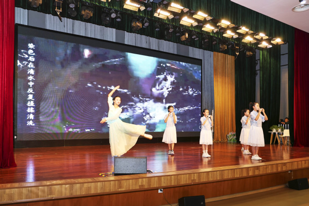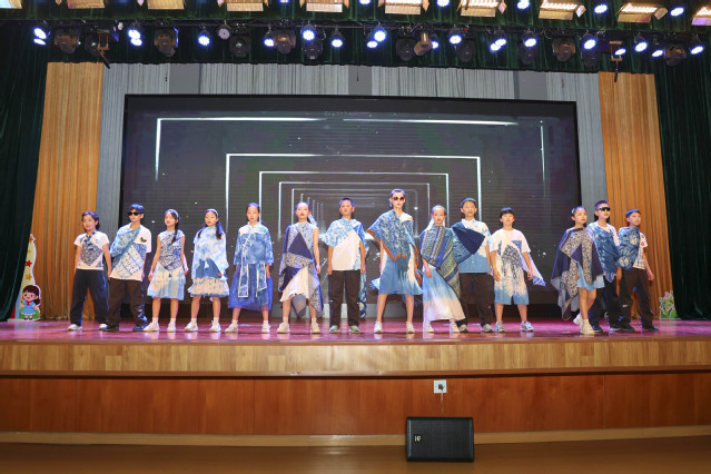 松江区仓桥学校的学生代表带来了“蓝染走秀”主题的艺术演绎,将非遗技艺与生态理念巧妙融合,学生们在一针一线中感悟绿色发展的传统智慧,呈现了一堂“行走的思政课”。