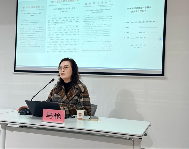为切实提升学院教师国家社会科学基金项目申报质量与科研创新能力,扎实推进2026年国社科申报筹备工作,2025年12月16日,上海对外经贸大学马克思主义学院特邀上海财经大学经济学院资深教授、博士生导师、上海财经大学中国经济思想发展研究院副院长、国家“马克思主义理论研究和建设工程项目”专家马艳教授作“国社科基金项目申报”专题讲座,学院党委副书记刘诚洁主持,全体教师参与。