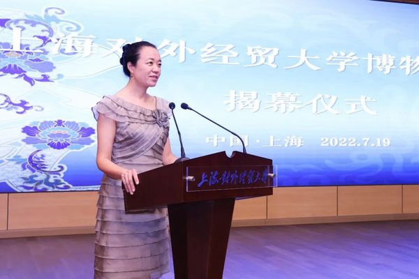 2022年7月19日,上海对外经贸大学博物馆标识揭幕仪式在古北校区综合楼506报告厅隆重举行。校长汪荣明和副校长于雪梅出席揭幕仪式,并共同为校博物馆标识揭幕。