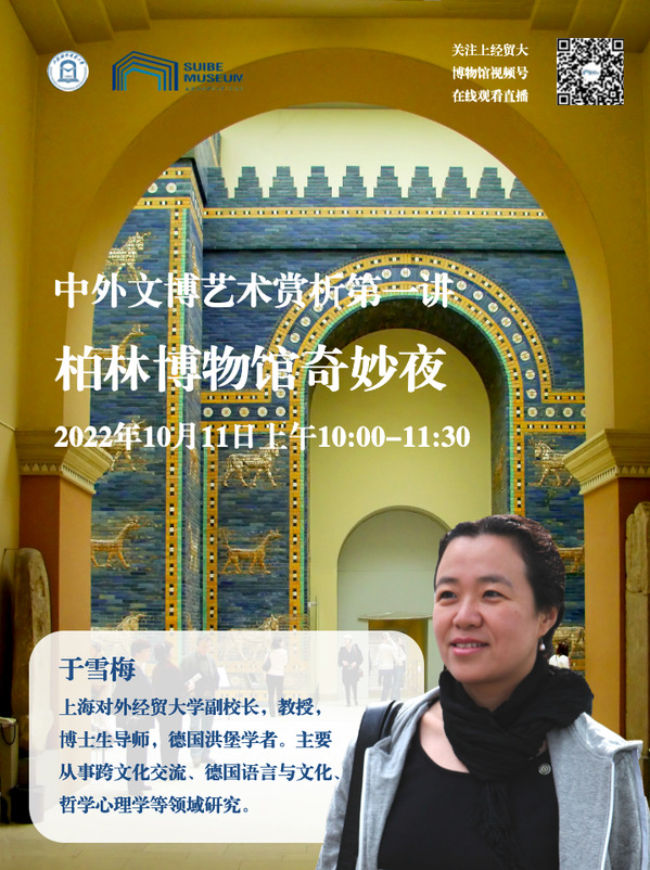 本次由校博物馆开设的《中外文博艺术赏析》美育通识课程,面向2022级新生,2022年10月11日,于雪梅副校长将给大家带来第一讲“柏林博物馆奇妙夜”。