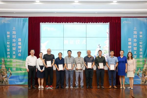 学校为同济大学博物馆负责人章回波,上海大学上海美术学院教授程雪松,原上海历史博物馆展陈部主任陈长乐,华东师范大学美术学院教授朱浒,原上海油画雕塑院院长肖谷,上海市对外文化交流协会理事、策展人孙永康,上海立信会计金融学院博物馆负责人孔晨旭等7位与会专家颁发上海对外经贸大学博物馆咨询顾问聘书。