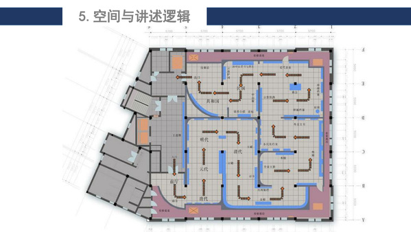 语言之外,也存在非语言符号,这在现在的展览设计中,是重点,也是难点。在空间布局当中,需要一定的空间逻辑将展品串联起来。整个展示空间存在强烈逻辑性关系,如同一条线索将展示的亮点展品串联起来。