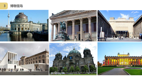 柏林的博物馆岛位于柏林的市中心,1999年12月列入世界文化遗产目录,包括老博物馆、新博物馆、老国家美术馆、博德博物馆及佩加蒙博物馆。世界遗产委员会评价:博物馆是一种社会现象,源于18世纪的启蒙运动。柏林的博物馆岛共有五个建于1824年至1930年间的博物馆,是一种理想的实现,展示了20世纪博物馆设计方式的变革。
