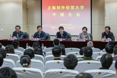 5月4日下午,学校在古北校区召开干部大会,宣布关于上海对外经贸大学领导班子调整的决定。市委组织部副部