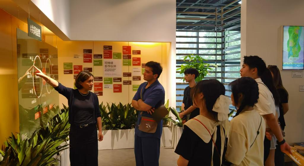近日,我校国际中文教育学院来自俄罗斯、泰国、老挝、乌克兰、越南、塔吉克斯坦、布隆迪等国留学生在学院党总支副书记虞娅娜与兼职辅导员丁梦澜带领下,赴UTC行家开展实践拓展活动。此次活动聚焦中国可持续发展事业,让留学生们以实践拓展的方式走进真实的中国企业,活动融合企业文化体验与绿色环保实践,为同学们打开了亲身走进中国、深入了解中国的窗口。UTC行家创始人、我校1989级经济系校友孔晓红女士代表UTC行家对来自世界各国的留学生朋友表示热烈欢迎。她向同学们详细介绍了近年来中国企业参与绿色中国、可持续发展项目的情况,以“行李箱里的绿色密码”为主题介绍了 UTC行家在可持续发展中的经验,她展示了企业如何从收集废弃塑料瓶开始,到制作再生面料以及最后制作系列产品的全过程,并介绍了企业“爱心箱送”项目,该项目累计修复4万只旧行李箱并赋予其新生。企业环境教育专家黑熊老师通过“桨板环保行”视频与 企业生态探索案例,向大家介绍了旅行志愿者清理户外垃圾的具体实践。随后同学们一同开展绿色环保知识竞赛,大家分组抢答有关绿色生态及绿色环保问题,在紧张的趣味比拼中深化对绿色环保的认知,现场气氛热烈。企业专业人员向同学们现