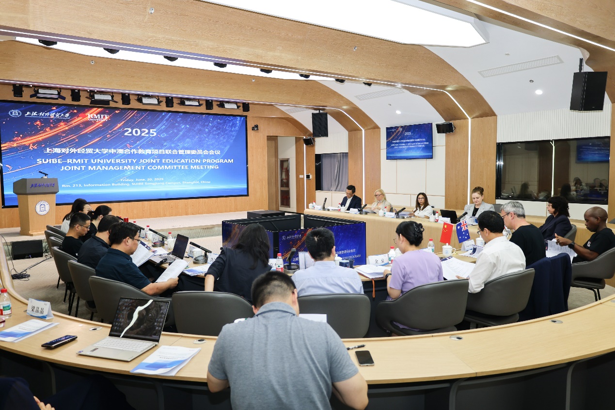 6月20日,一场聚焦国际教育合作与人才培养的重要会议——上海对外经贸大学与澳大利亚皇家墨尔本理工大学(RMIT大学)合作项目2025年联合管理委员会会议在松江校区图文信息楼213会议室圆满举行。此次会议搭建起两校深度交流的桥梁,为双方未来合作指明方向。RMIT大学主管法商学部的副校长Colin Picker、主管战略和国际事务的法商学部副部长Mathews Nkhoma,英语培训中心行政总裁Jake Heinrich,以及国际关系部副部长Emma Steinke、职业教育学部商务项目经理Swati Dave和职业教育学部商务项目主管Annitta Siliato等澳方代表,通过线上线下相结合的方式参与会议。上海对外经贸大学副校长徐永林,外事处处长金泉,国际经贸学院院长何欢浪、副院长沈克华,合作项目各专业负责人、教师代表出席会议。会议由徐永林副校长与Colin Picker副校长共同主持。会议伊始,徐永林作了热情致辞,对远道而来及线上参会的澳方嘉宾致以热烈的欢迎和衷心的感谢。他强调,教育对外开放是教育改革发展的推动力,是经济全球化发展的客观要求。自1998年开启合作以来,两校携手走过27