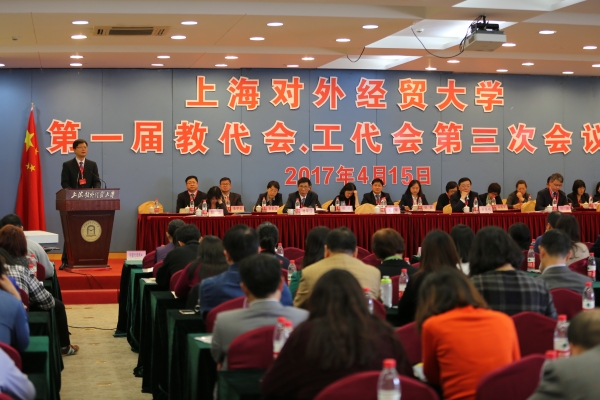 四月,阳光明媚,春意盎然。在上海高校思想政治工作会议召开后,我校迎来一次重要会议。4月15日,我校第一届教代会、工代会第三次会议在松江校区隆重举行。校党委书记殷耀,校长孙海鸣,校党委副书记楼军江,校党委副书记、副校长、校工会主席祁明,副校长陈洁、聂清、徐永林出席会议。全校各部门125名正式代表出席会议。会议邀请相关部门负责人、离退休同志代表、民主党派代表、校工会“两委”委员等特邀代表列席会议。