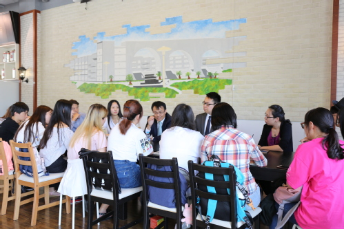 仪式结束后,3位校外特聘专家郁时明总监、张卓君经理和贾杰老师分别来到文汇141咖啡馆、博萃楼318室、信息楼534室与师生开展面对面交流活动。