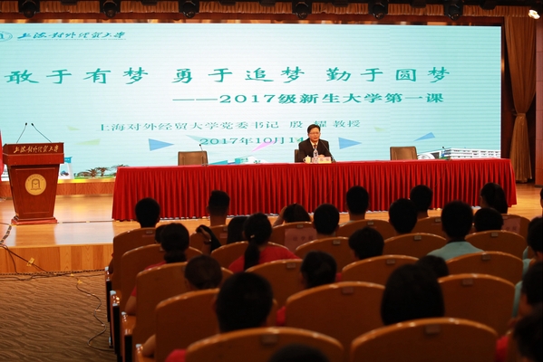 10月14日下午,校党委书记殷耀给2017级本科新生上“大学第一课”:敢于有梦、勇于追梦、勤于圆梦——大学四年怎样度过。学工部负责人、各学院副书记和辅导员与2000多名2017级本科新生一起聆听了“大学第一课”。