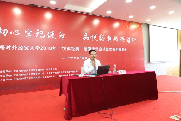 “悦读经典”项目旨在带领青年学生党团员学习马列经典著作和当代马克思主义理论著作,读原著、学经典、悟党史、明责任。为深入学习贯彻习近平新时代中国特色社会主义思想和党的十九大精神,在校党委宣传部、组织部的指导下,工商管理学院党委和校党委学工部共同举办2018年“悦读经典”巡回活动,以“不忘初心,牢记使命,品悦经典,砥砺前行”为主题,面向全校师生开展经典阅读。活动受到了马克思主义学院党总支、图书馆直属党支部、松江区共青团、中国银行长宁支行党委、武警上海总队某支队等共建单位的支持。