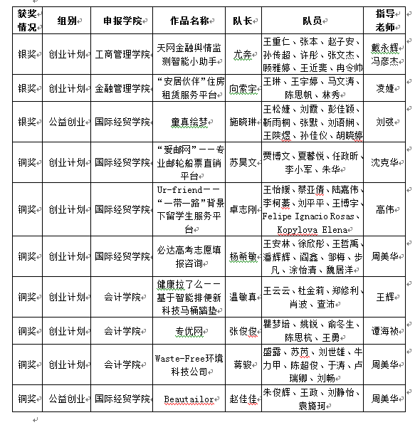 附:我校团队获奖名单