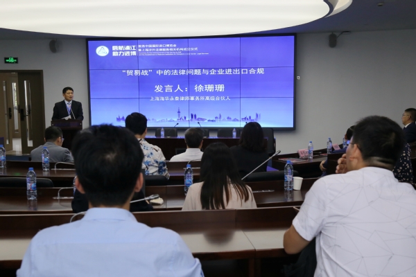 9月26日,“启航浦江·助力进博”——服务中国国际进口博览会暨上海涉外法律服务相关机构成立仪式在古北校举行。本次活动由上海市司法局主办,上海市企业法律顾问协会、上海市律师协会、我校承办,上海市海华永泰律师事务所等多家知名律师事务所协办。来自上海市委政法委副书记章华、上海法学家企业家联谊会会长柴俊勇、上海市司法局副局长王协、上海市经济与信息化委员会副主任吴金诚以及上海市发展涉外法律服务业联席会议成员,各大院校的专业学者,相关央企、市企、外企,本市涉外法律服务示范律师事务所相关律师、知名媒体以及法学院研究生近200人参加成立仪式。