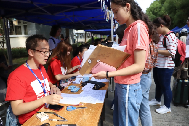 当天一早,校党委书记殷耀,校党委副书记、纪委书记许玫,校党委副书记、副校长祁明,副校长徐永林、张道方等领导来到学生社区“一站式”报到现场了解情况。他们走访了每一个报到摊位,与新生和家长进行了亲切的交谈。报到现场,后勤综合管理处、学生处、财务处、保卫处、招生办公室、医务室等职能部门和各学院早早准备就绪,为新生办理入学注册、学费缴纳、行李托运、户籍迁移等各类事项。学院摊位前也各具特色,外语学院的青领志愿者们为新生制作了精美的明信片,并写上了祝福的话语。金融学院用照片串成的长廊,展示着学院丰富多彩的校园生活。学校为经济困难新生开通了绿色通道,方便学生办理助学贷款和入学手续,同时为经济困难的学生提供了专项助学金。500余名“青领学长志愿者”和“迎新志愿者”分别在9号线地铁站、公交站、社区、校区等地引导和接待新生,做新生向导,向新生介绍大学学习和生活。一张张热情的笑脸,一句句亲切的问候,一项项贴心的服务,让新生在入学第一天就感到家的温暖。