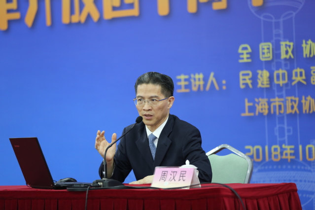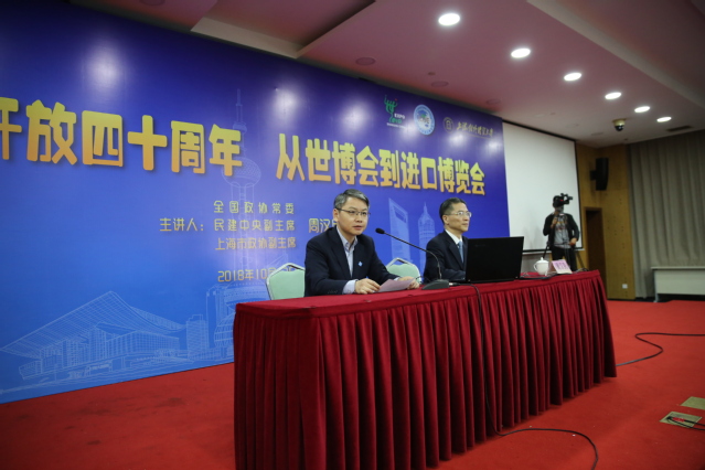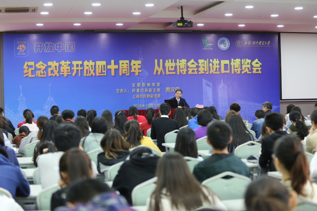 1012日下午,马克思主义学院《开放中国》课程开课,邀请了全国政协常委、民建中央副主席、上海市政协副主席、杰出校友周汉民教授,为学生作了题为《纪念改革开放四十周年从世博会到进口博览会》的首场授课。校党委副书记、副校长祁明主持讲座