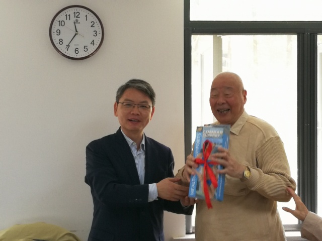 为离退休干部祝寿是我校一直坚持的工作。在欢乐祥和的气氛中,祁明向90岁寿星送上祝福和礼物,向与会的离休干部送上重阳糕点,并合影留念。
