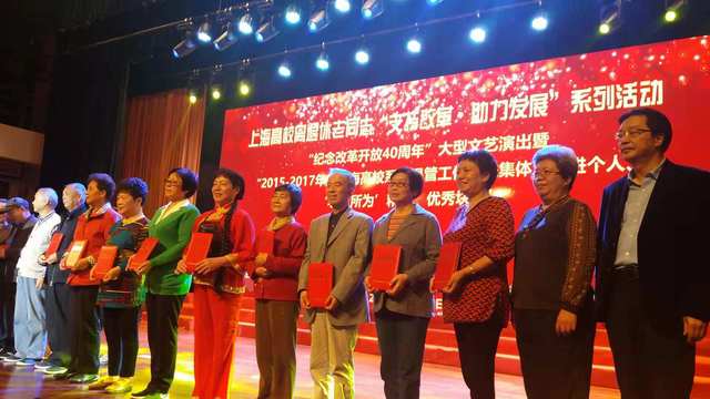 10月25日下午,上海高校系统退管工作表彰大会在上海交通大学徐汇校区文治堂举行。经过前期学校申报,教卫系统组织答辩和评审,我校获得“2015—2017年度上海高校系统退管工作先进集体”称号。同时,我校仇文同志获得先进个人称号;金道明同志获得“老有所为精英”称号;金基宁同志获得“优秀块组长”称号。