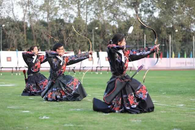 在运动员代表王璐和裁判员代表蔚华亮依次宣誓后,教育部学生体育协会联合秘书处秘书长、中国大学生体育协会主席薛彦青宣布本次中国大学生射箭(射艺)锦标赛正式开幕。