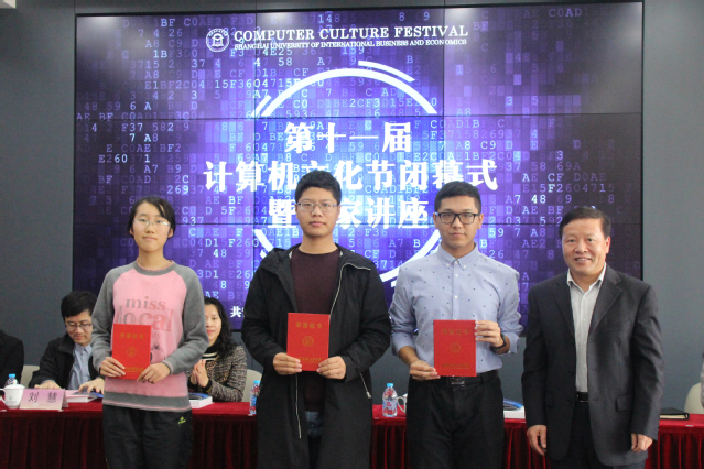 11月30日中午,我校第十一届计算机文化节闭幕式暨专家讲座在图文信息楼503会议室举行。校党委宣传部部长严大龙为闭幕式致辞,华东理工大学信息科学与工程学院虞慧群教授、校图书馆馆长王群、统计与信息学院党总支副书记陈加林、副院长刘慧、党总支副书记韦玉娟、校团委副书记缪韵笛、计算机应用能力大赛顾振宇、院信息管理系老师钱之琳以及全校百余名计算机爱好者参加本次闭幕式。