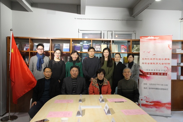 12月20日下午,国际商务外语学院举行主题为学习贯彻全国教育大会精神的“三全育人”座谈会。国际商务外语学院院长温建平、党委副书记(主持工作)张嵘、学院专业主任、党支部书记、关工委老师、红色导师、专业教师、辅导员教师代表出席本次活动。