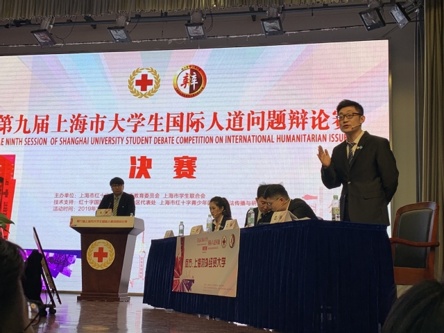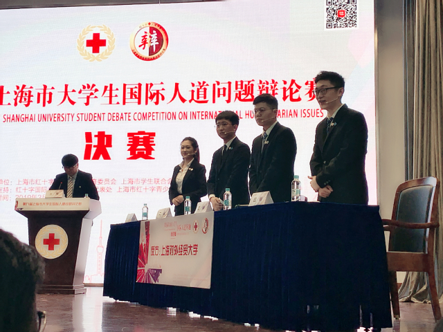 5月25日,上海市大学生国际人道问题辩论赛决赛在上海青年管理干部学院举行,决赛辩题为“非战事国应当接受/可以不接受因武装冲突而流离失所的人”。由我校学生张烨、孙敬豪、杜铭钊、潘磊组成的辩论队参加决赛,并最终获得亚军。同时,我校辩手张烨获得最佳风度奖、孙敬豪获得最佳口才奖。我校红十字会秘书丁雪晶和法学院辅导员冯予婧带领50名学生观众现场观摩助威。