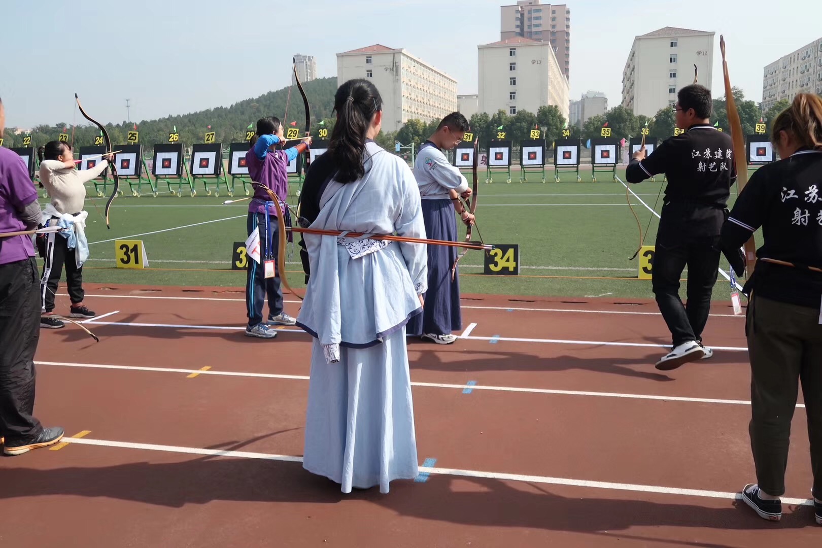 2019年第三届中国大学生射箭(射艺)锦标赛10月25-27日在江苏建筑职业技术学院举行。本次比赛由中国大学生体育协会主办,江苏建筑职业技术学院承办,来自全国68所高校564名参赛选手参赛。我校体育部主任崔树林作为嘉宾出席开幕式,观德射艺队12名运动员在体育部直属党支部书记李永华以及教练员李培金的带领下参加传统弓和反曲弓两大项目的比赛,取得三金两银一铜的优异成绩。