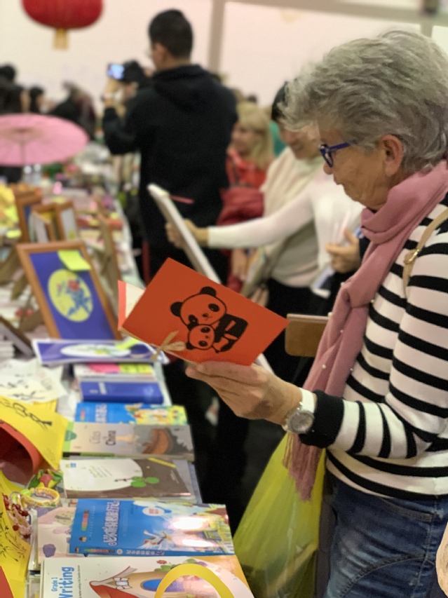在前期义卖品的准备中,孔子学院教师齐上阵,精心设计并手工制作了圣诞和新年贺卡、手工灯笼、手链和多幅书画作品。这些充满中国文化元素和教师们爱心的物品在义卖当天引起了现场各国朋友的浓厚兴趣。圣诞和新年即将到来,因此,手工制作并现场书写中文祝福语的贺卡倍受青睐,许多当地朋友都想用这样一张特别的贺卡给家人和朋友送上节日祝福。