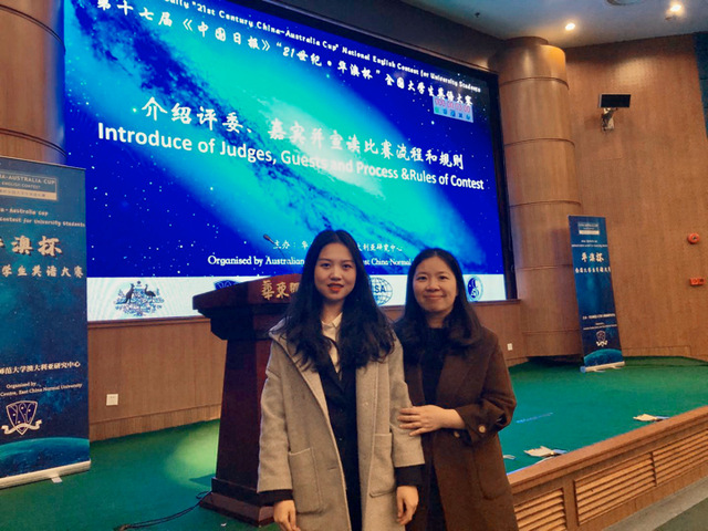 12月7日周六,第十七届《中国日报》“21世纪·华澳杯”全国大学生英语大赛在华东师范大学中山北路校区隆重举行,我校国际商务外语学院2018级中英专业曾柳妍同学在激烈的角逐中荣获三等奖。