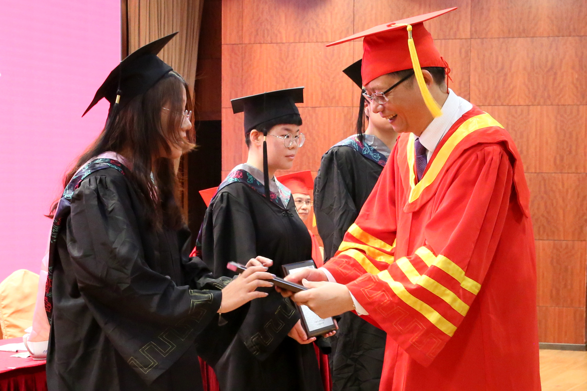 学生的成长离不开老师们的谆谆教诲和悉心教导。法学院院长张庆麟教授作为教师代表发言。张庆麟教授与毕业生分享三点体会:一是要处理好小我和大我、奉献和索取的关系;二是要具备独立思考,善于创新的精神;三是要具备敏于行动、脚踏实地的实干意识。他真诚寄语毕业生:人生没有真正的完美,只有不完美才是最真实的美;人生没有一帆风顺,只有披荆斩棘才能路路通顺;人生没有永远的成功,只有在挫折中站起才是真正的成功;人生没有永恒,只有闪光的人生才是生命的永恒。最后他祝福毕业生鹏程万里,展翅翱翔。
