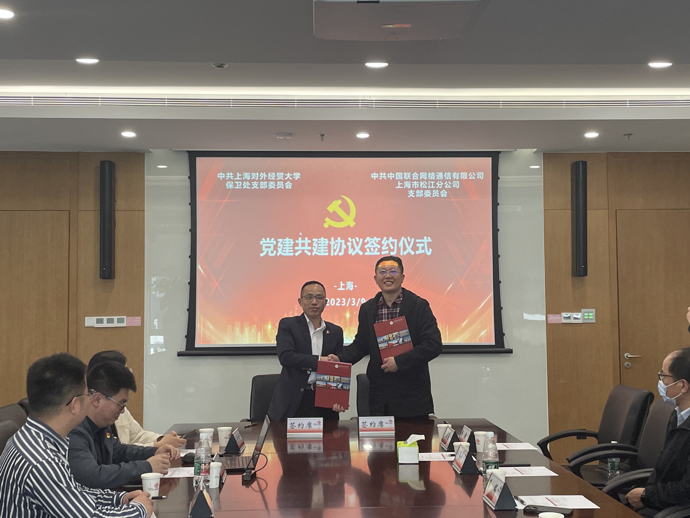 会上,保卫处党支部书记李少丹与中国联通上海市松江分公司党支部书记孙寿新签署了《支部共建协议》,双方将结合各自工作特色,开发拓展双方优势资源,实现资源共享、优势互补、相互借鉴,达到合作共赢、开拓创新的新高度,推动新时代高校校园安全保卫工作取得新成效。