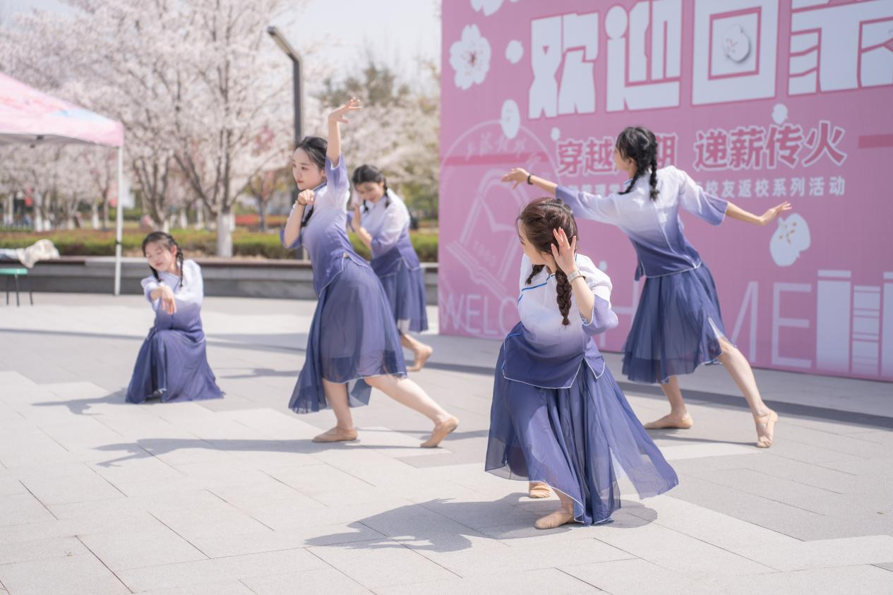 主题活动共包括樱花林游园会、广场音乐会、新图书馆和校史馆游览、校友代表面对面等环节。返校校友赏樱拍照的同时,在刀笔油画体验、成语猜猜看等互动游戏和学生舞蹈团、合唱团、舞道社的歌舞串烧表演中重温精彩校园生活,现场气氛热烈。