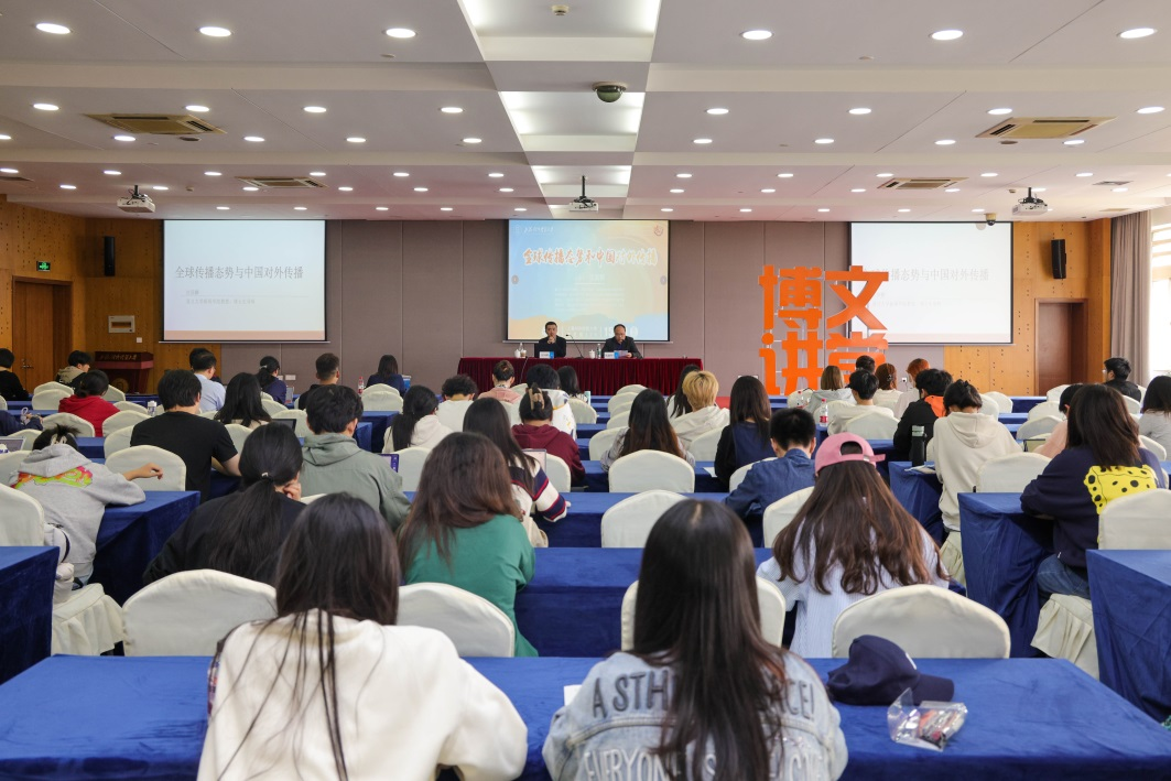 4月14日下午,学校2023年第二期博文讲堂在松江校区图文信息大楼526会议室举行。本次活动由校党委宣传部、学工部、教务处、研究生院联合主办,为学习贯彻党的二十大精神,邀请复旦大学新闻学院教授、博士生导师沈国麟作题为“全球传播态势和中国对外传播”的专题讲座。现场200余名师生聆听了讲座。活动由党委宣传部副部长陈颖辉主持。