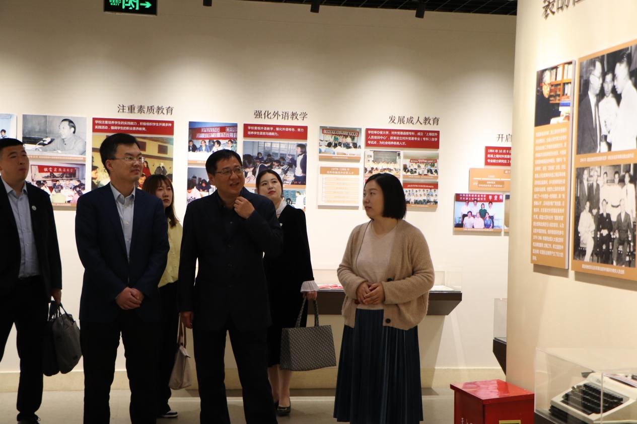 会前,缪韵笛和高伟陪同郑师一行参观了我校校史馆,档案馆馆长、校史馆负责人郭新顺,宣传部柴媛媛就学校发展历程作讲解。