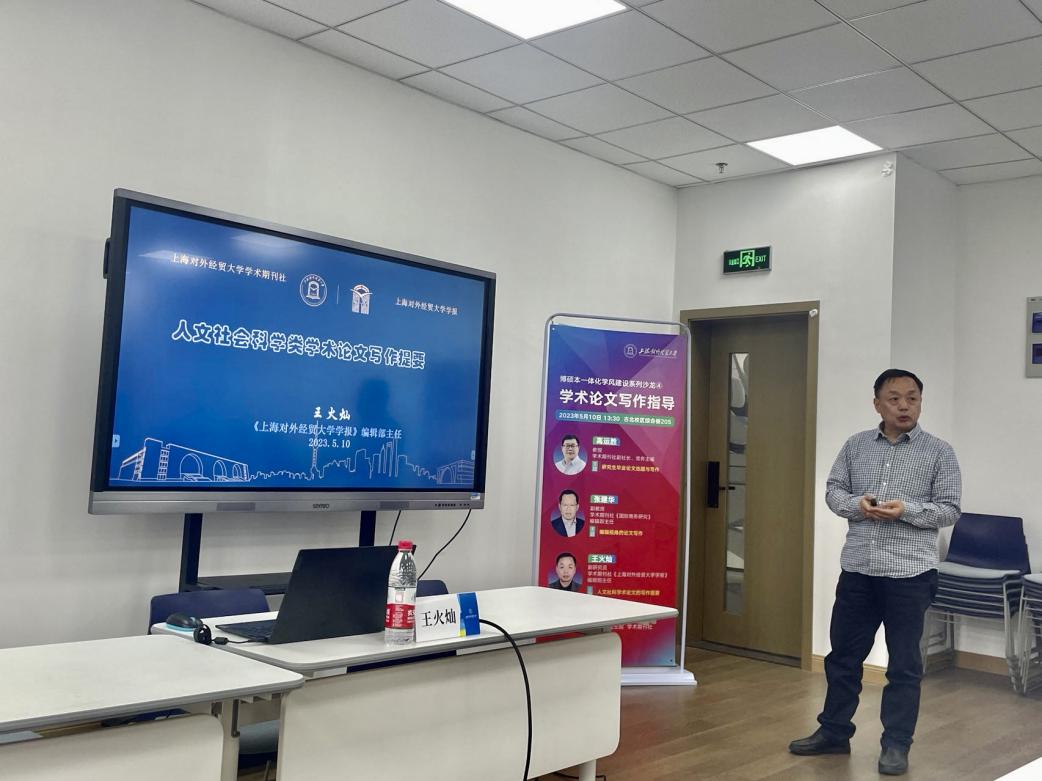 为进一步丰富学生的学术文化生活,加强学术研究指导,5月10日下午,党委研究生工作部、研究生院、学术期刊社联合举办博硕本一体化学风建设系列沙龙之四“学术论文写作指导”,活动在古北校区综合楼205室举办。学校学术期刊社副社长高运胜教授、《国际商务研究》编辑部主任张建华副教授、《上海对外经贸大学学报》编辑部主任王火灿副研究员出席活动并作专题辅导,活动由党委研究生工作部副部长、研究生院副院长乔檀主持。