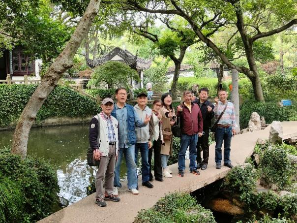 下午,老教授们来到上海五大古典园林之一的“曲水园”,园内建筑由青瓦、白墙、青砖构成,满园翠竹生机勃勃,古典建筑精巧典雅。老教授姚昆遗即兴赋诗“园小景深,古拙典雅;闹中取静,小中见大”一首,以表达他对曲水园的喜爱之情。