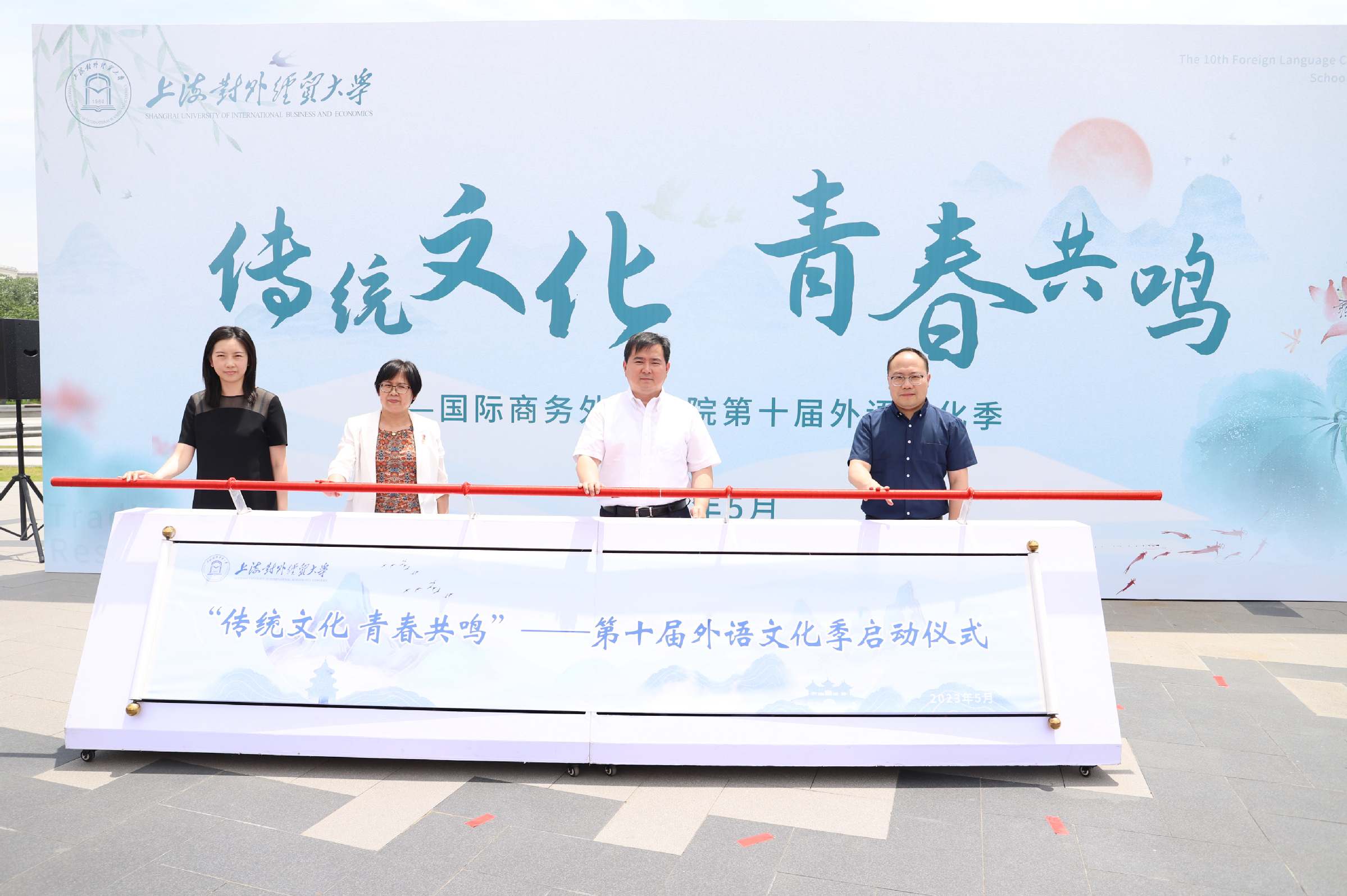 外语文化季是我校国际商务外语学院主办的校级品牌活动,让同学们在沉浸式体验与实践中讲好中国故事,唱响青春之歌。5月16日中午,“传统文化,青春共鸣”——国际商务外语学院第十届外语文化季开幕仪式在松江校区举行。国际商务外语学院党委书记刘根春、院长温建平,校党委宣传部副部长陈颖辉,校团委书记司徒力云、统计与信息学院党委副书记范鸣,国际商务外语学院党委副书记徐峰、辅导员、第二十五期精英团校学员以及各兄弟学院团委书记、师生代表出席活动。