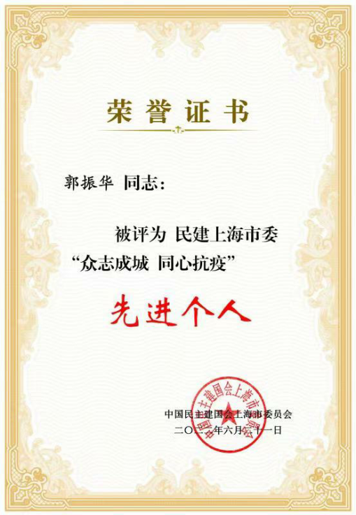 根据学校和民建市委对疫情防控工作的要求,我校民建支部及时跟进和宣传会员们积极应对疫情的有力行动,传递正能量。郭振华、俞永斌两位会员获得民建上海市委“众志成城 同心抗疫”先进个人。