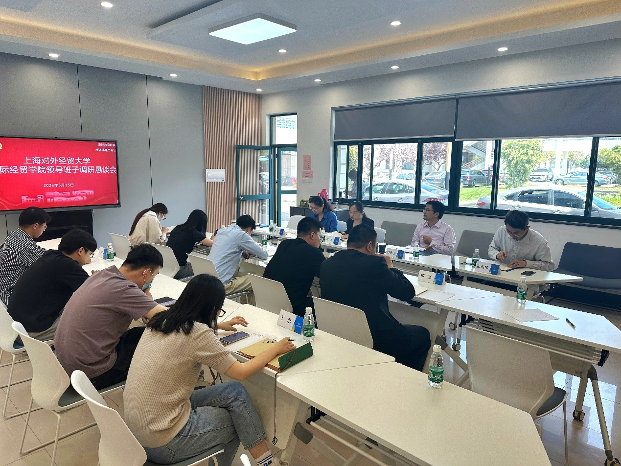 为推进学习贯彻习近平新时代中国特色社会主义思想主题教育向深里走、向实里走、向心里走,2023年5月11日-30日,国际经贸学院领导班子深入开展基层调研,分别召开教授代表、辅导员代表、学生代表、系主任和支部书记、骨干教师代表和青年教师代表等6场主题教育恳谈会。学院领导班子聚焦学校改革发展任务,围绕学院中心工作,结合工作实际,扑下身子调研、找真问题,找寻破解难题的办法和路径,逐项破好题、解好题,推动成果转化和取得实效。
