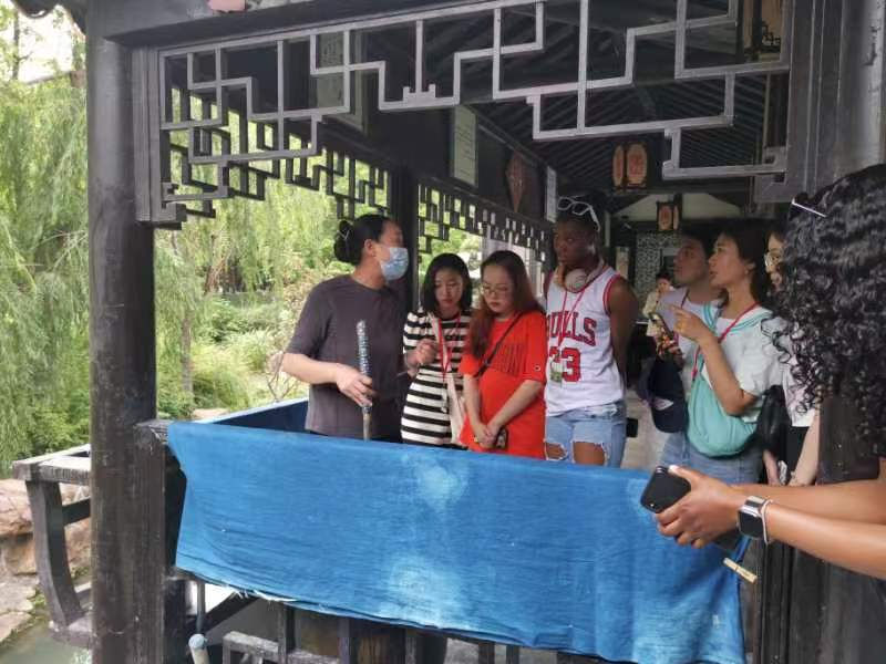 6月1日上午,同学们抵达参访活动的第一站南通博物苑。南通博物苑位于风景秀丽的濠河之畔,由著名爱国实业家、晚清状元张謇于1905年创办,是中国最早的一所公共博物馆。工作人员为留学生们详细讲解了馆内的诸多藏品,展现了南通的农耕、纺织、瓷器的悠久历史,让留学生们流连忘返,也对南通的自然、历史概貌和最具特色的纺织业有了更进一步的了解和认识。