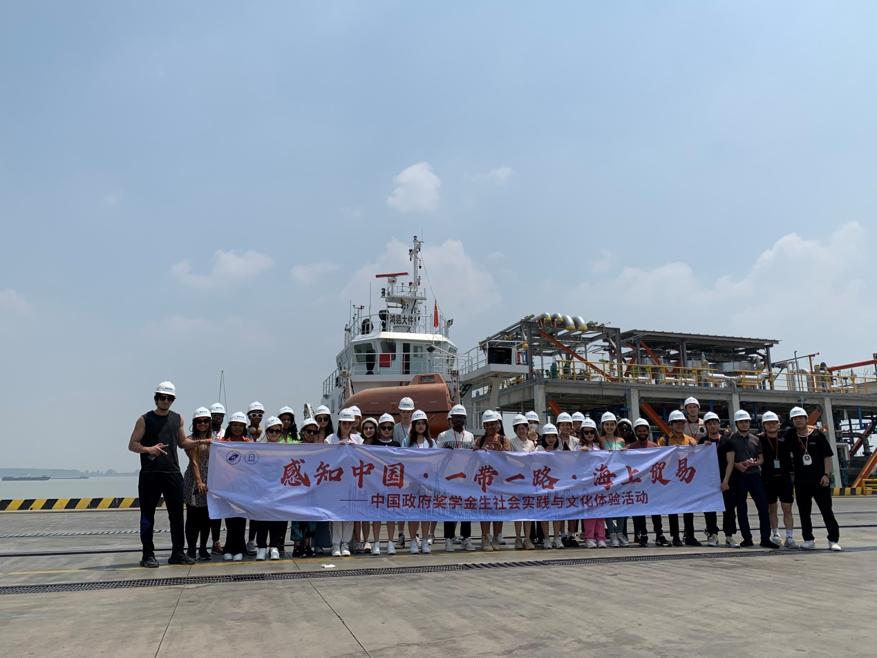 留学生们参访的码头主要负责的正是“一带一路”海外建设项目重装设备的运输。港口工作人员不光为留学生们精心准备了一场关于港口以及张家港城市的现场讲座,还带领着留学生们驱车前往港口码头,亲眼见证了重装设备在港口的运输过程,深刻感受到了张家港港口在“一带一路”中发挥的重要作用。一些“一带一路”沿线国家的留学生借这次的机会,还留下了港口工作人员的联系方式,期待未来合作的可能。