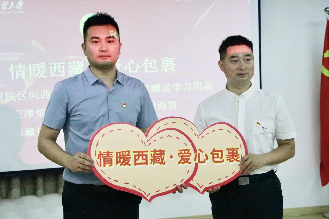 社区是社会的细胞,是城市的细胞,是社会发展的基础。活动中,上海对外经贸大学工商管理学院党委书记武增勇、松江区悦都居民区党支部书记张业东共同为沪藏两地红色班会实践团队授旗。“情暖西藏·点亮梦想”项目目前已深入探索沪藏两地的融合发展多年,本次授旗仪式的顺利举办也将社区的力量注入到了两地未来的交流发展之中。