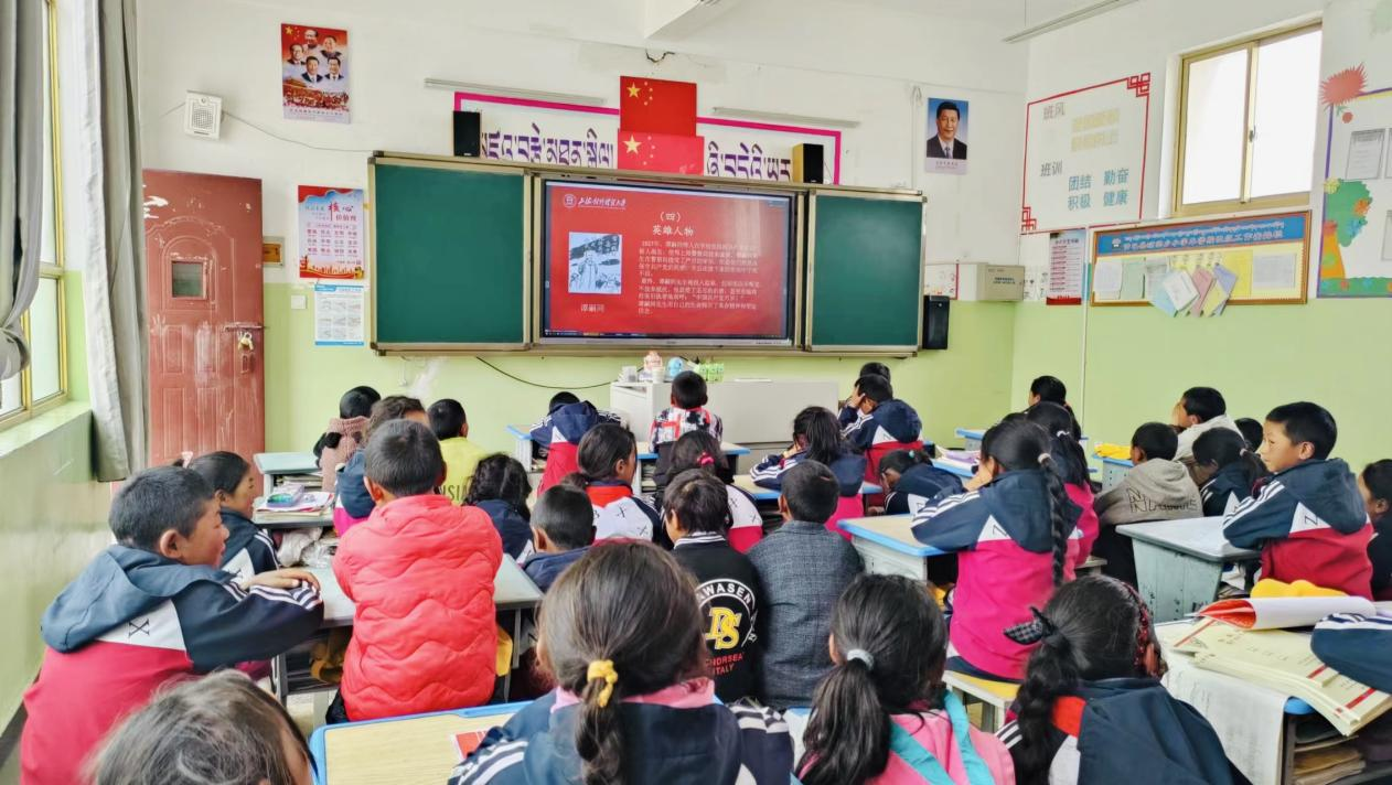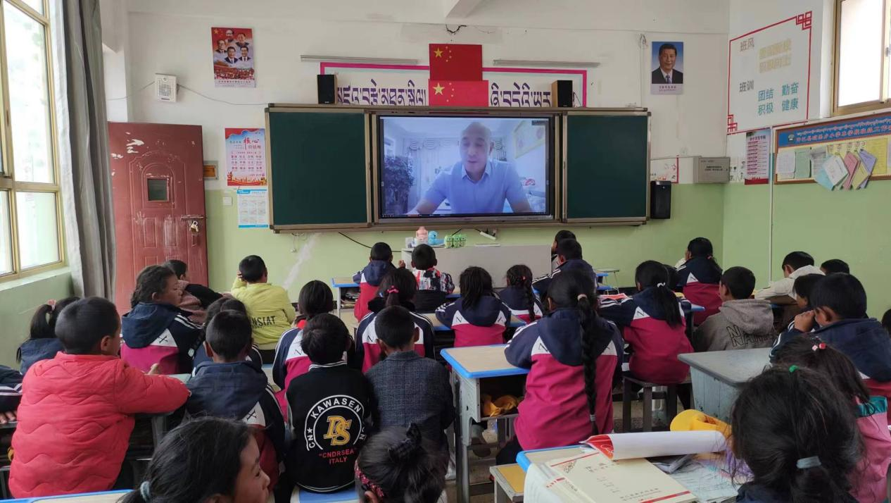 活动伊始,会议的大屏幕上就出现了西藏日喀则市仲巴县琼果乡小学学生们的一张张欢笑的脸庞,隔着屏幕,两地的老中青们互相热情地招手,表达着最诚挚、最温暖的问候。
